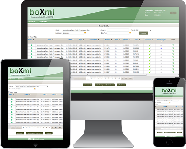 O boXml consulta e baixa automaticamente em lote as NFEs emitidas contra seu CNPJ - e em seguida, armazena com segurança na nuvem, com espaço ilimitado.